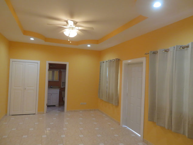 The bedrooms are very large, and all have built-in wooden closets equipped with drawers and hanging racks for easy clothes and shoe storage. Each room also has ceiling fans and an abundance of LED lights that make it well-lit and ventilated. The master bedroom is the largest, consisting of a larger closet, a full bathroom, and direct access to its tiled verandah.