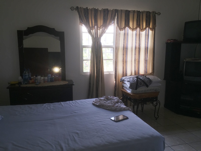 The house comes with air condition in one of the rooms, and is completely tiled. It also fully fenced and sits on high land with a slope going downward.
