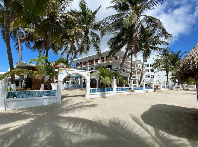 Beautiful prime beachfront Resort for sale in San Pedro Ambergris Caye in the Belize District located on the South Side Town of the island on the Main Road with beach access. The resort has over 45 rooms and can accommodate small parties or large groups. The resort has modern conveniences. There are four one-bedroom apartments on the beach side, one two-bedroom apartment, and one one-bedroom cottage. Additionally, the resort features a restaurant & bar, a pier, a dive shop, an office, a pool, and a seawall. On the north side of the main building, you can build a 5-story building (Expand). This beautiful beach resort with a panoramic view of the Caribbean Sea, has a total of 45 hotel rooms in total (40 rooms are currently in use) The resort sits on a double lot with approximately 200 feet of Beach front x 150 in-depth. It is located in the center of San Pedro Town with access to all amenities and within walking distance to other restaurants, supermarkets, banks, schools, and churches.