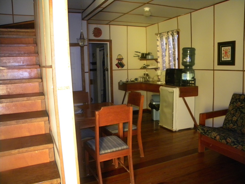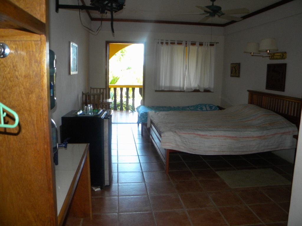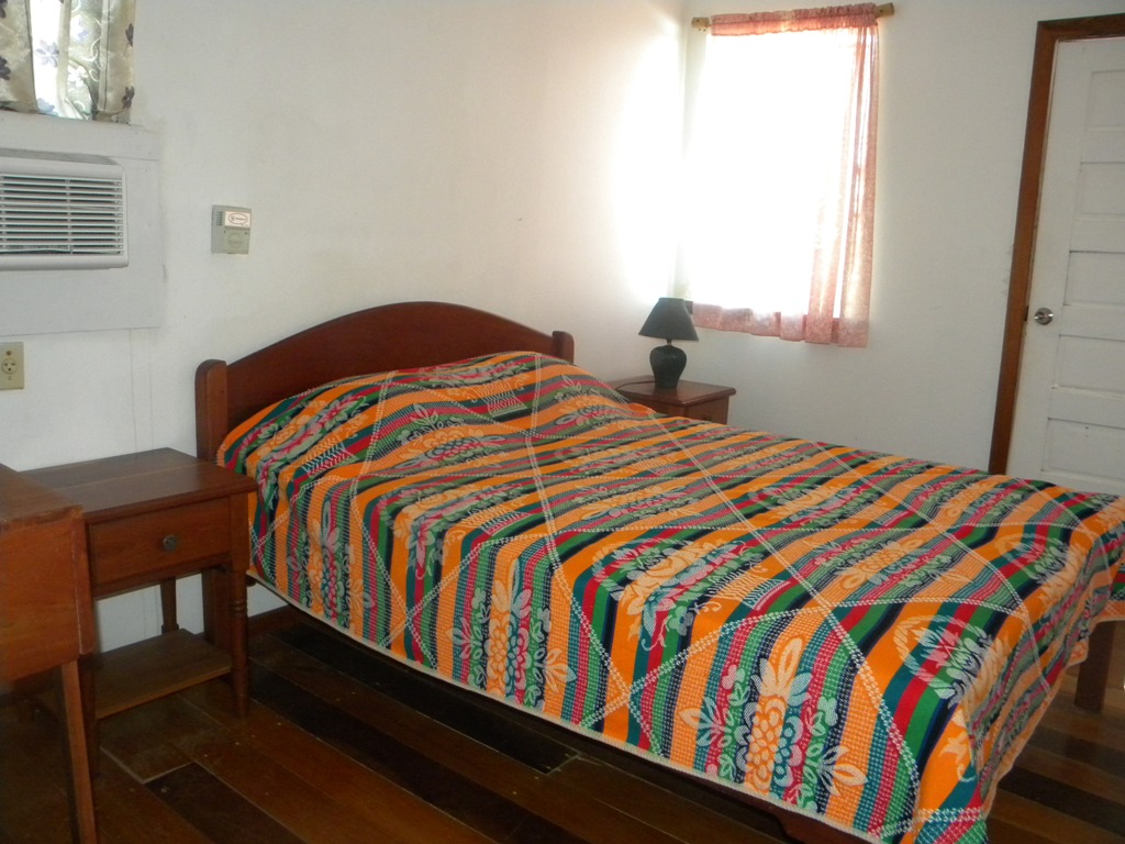 Lagoon side large cement building consist of main floor restaurant, office, second floor 4 separate rooms that can sleep up to 3 persons with air condition. Third floor is a large two bedroom,2 bath, open floor plan with laundry room owners quarters. Also on property it has a separate house for employees or a rental it's a 2 bedrooms 1 bath.
