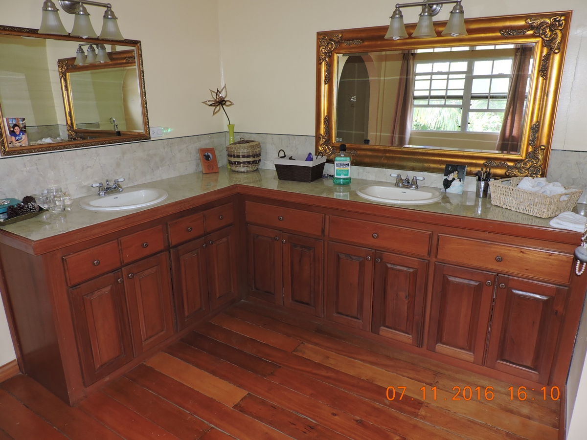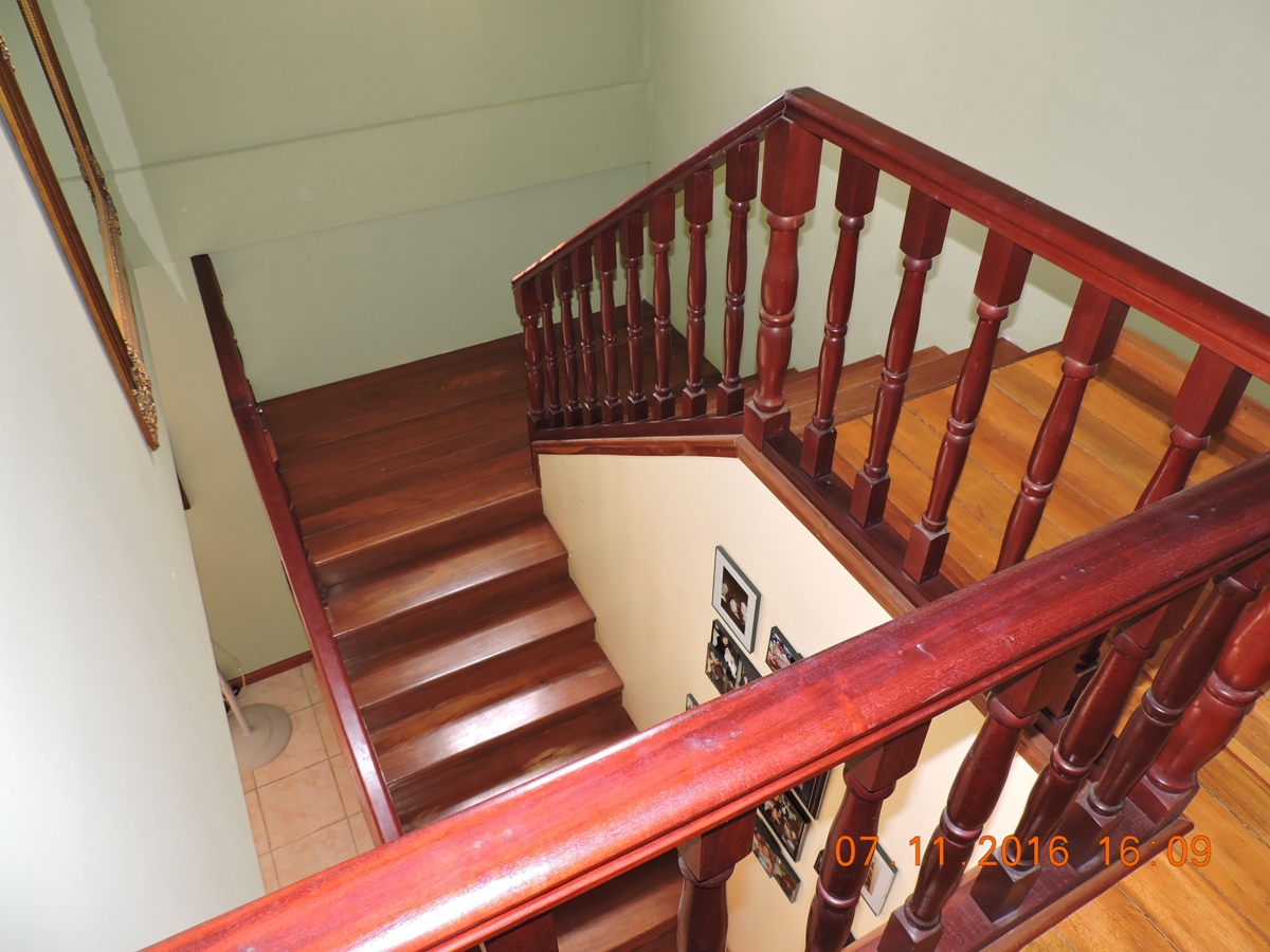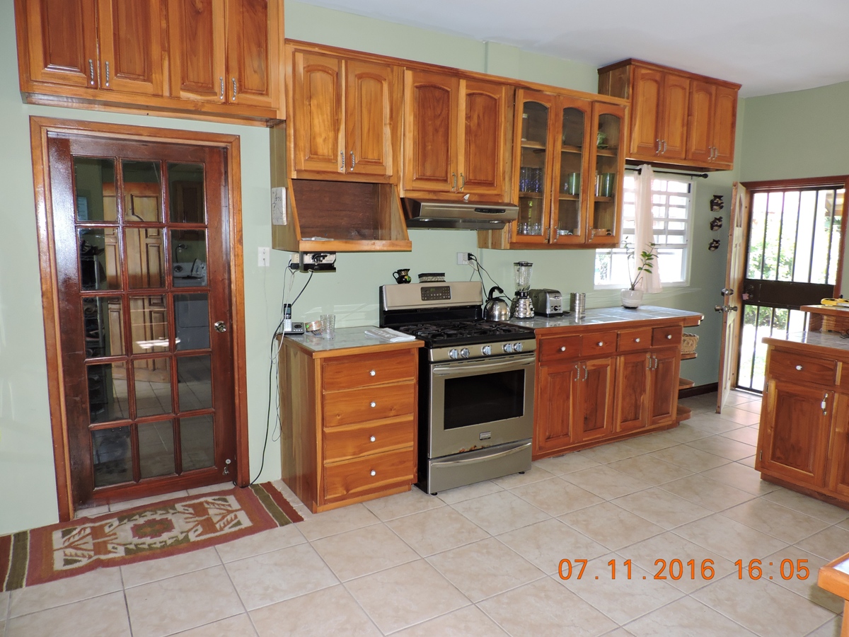 This is a beautiful, semi-furnished, two-story concrete building that is situated on a double lot within the Piccini neighborhood. It measures 4,200 square feet along with an upper floor that has a polished wooden floor and a concrete bottom floor. It has a dining room, living room, and an open space kitchen. There are a total of 5 bedrooms, four are located on the upper floor and the guest bedroom is located in the lower floor. It also contains a laundry room and a storage room. It is fully fenced and has burglar bars. It has a wooden staircase that grants access to the upper flat. The yard is beautifully landscaped and spacious and measures 150 ft street frontage by 90 feet in depth. The house also has hot and cold water that runs on solar power. Whenever the power is down the solar energy will serve as an alternate source of electricity that will provide power only to the master bedroom area on the upper flat along with providing power to all utilities in the lower flat except the refrigerator.
