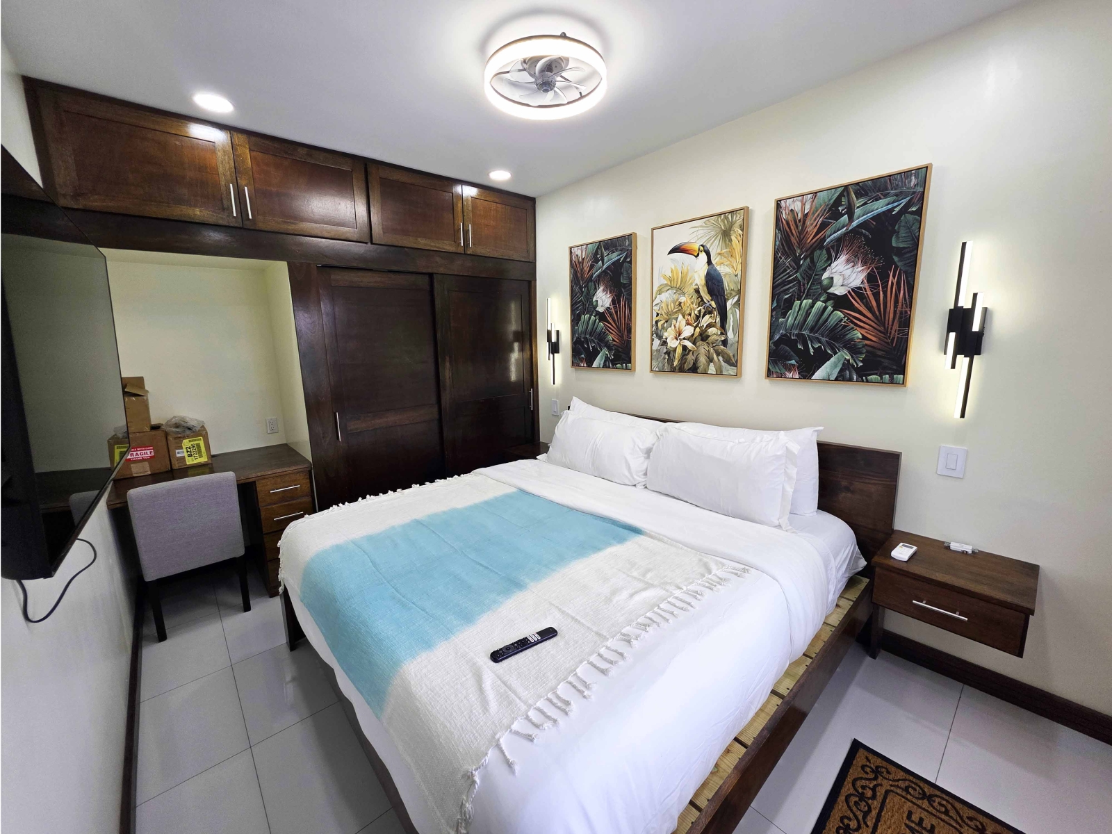 Additionally, the living area is equipped with a comfy couch and television where you can sit and relax while enjoying your favorite shows. The bedroom is well furnished with a bed, drawers and also offer a built-in closet. Living and bedroom have air conditioning. The yard is fully fenced and situated in a peaceful and safe neighborhood.