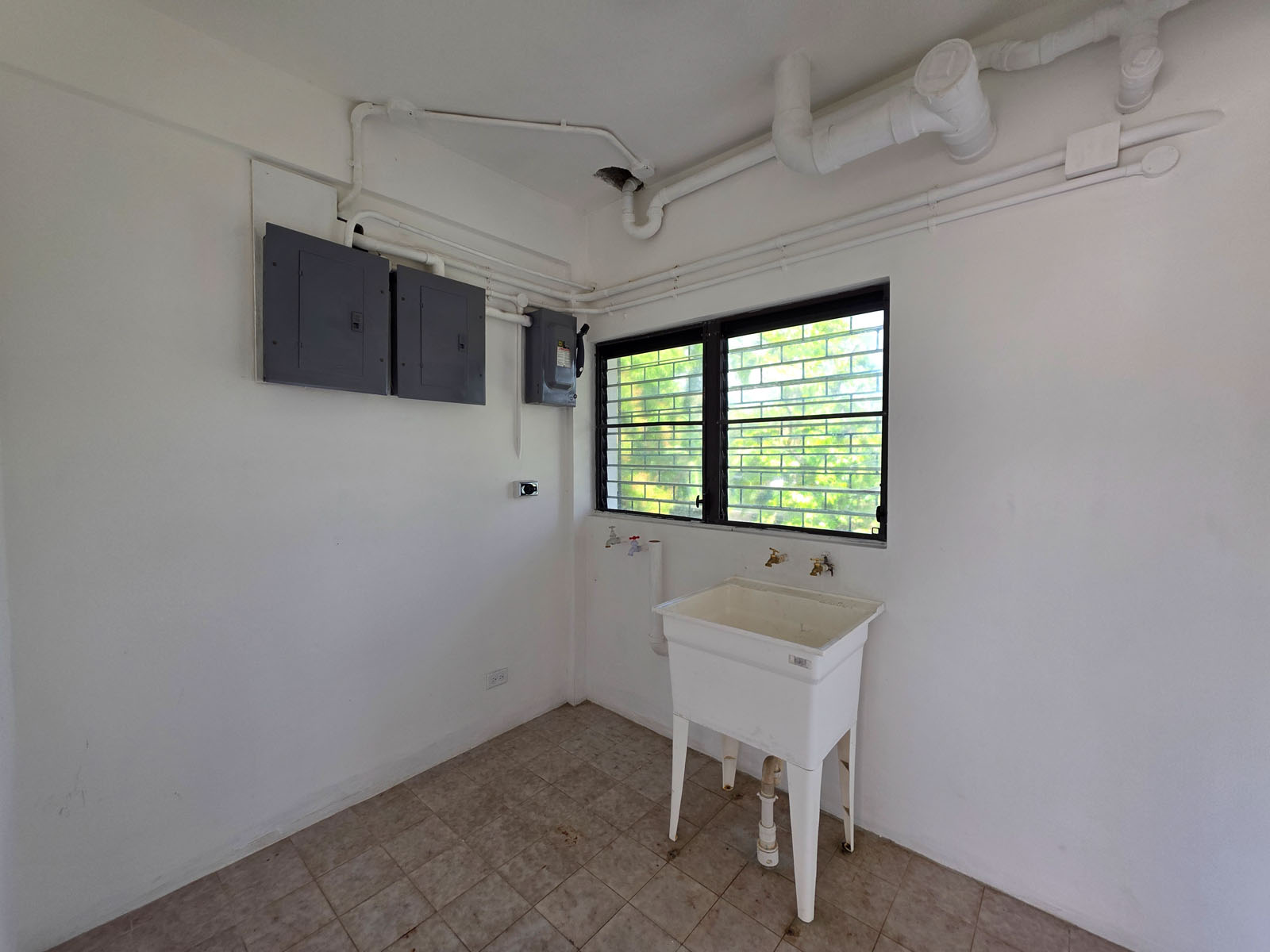 From the main level, step down to a laundry area and access a large basement-style storage space, providing plenty of room for organization. The property also includes a separate private maid’s quarters complete with its own bathroom.