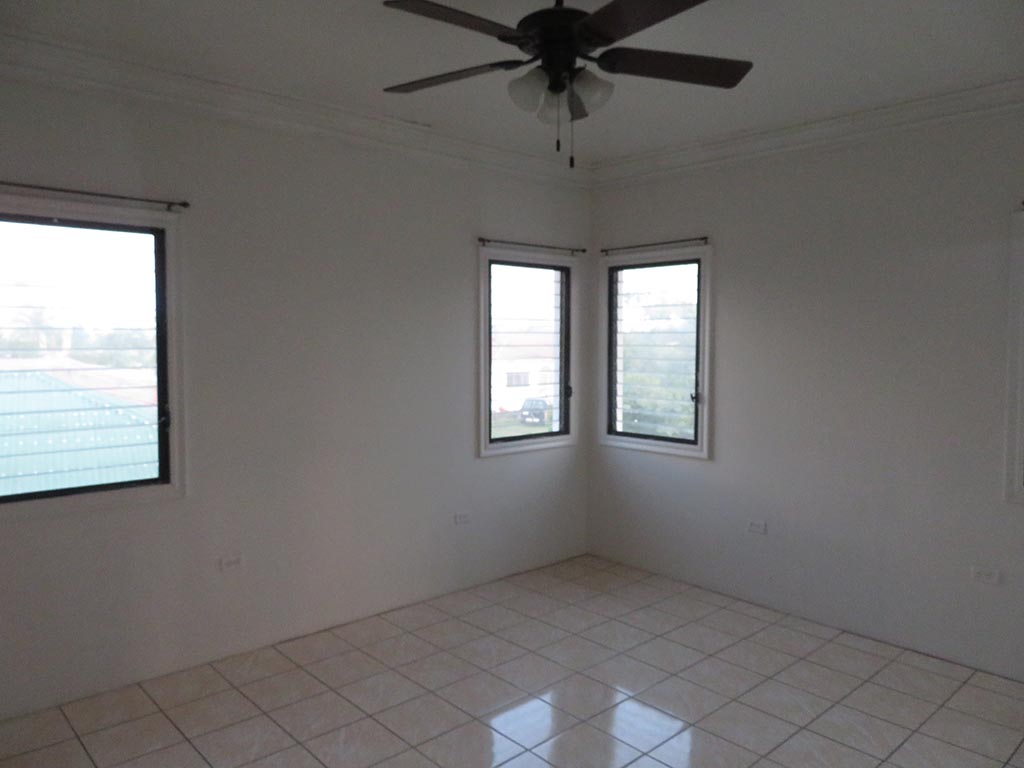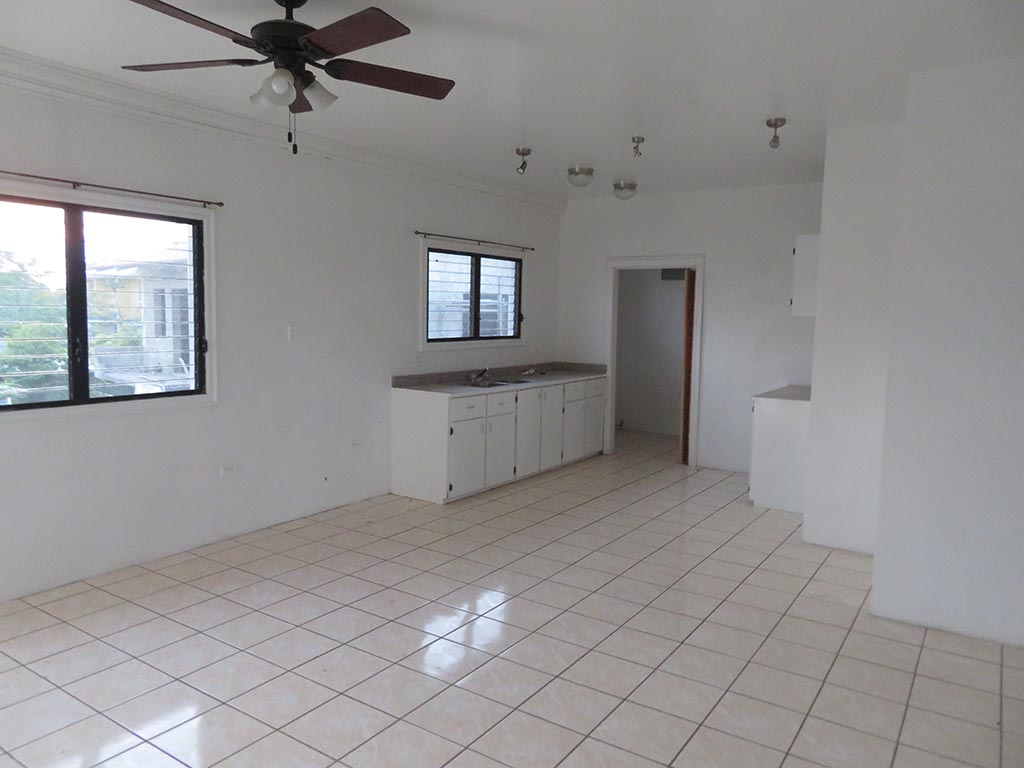 This space is the upper flat of a two storey home. It has 3 bedrooms 2 bathrooms and features an open kitchen a living room layout. The living room gives access to a small veranda thru sliding glass doors which when open fully gives way to a cool breeze throughout the house. Each flat had its designated yard space separated by a chain link fence which also offers personal separated parking.