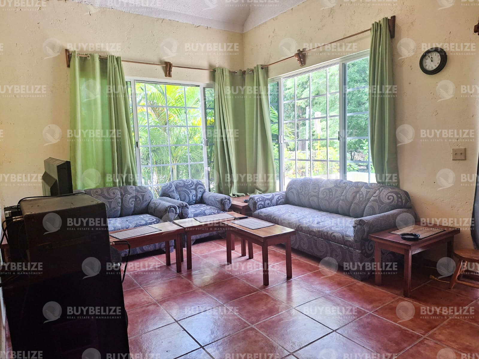 This cozy tropical home is located in a residential area on the outskirts of peaceful Corozal Town. Fully furnished, this must-see-to-appreciate home comprises two large and spacious bedrooms, an open-concept kitchen, and a living and dining area, as well as a full bathroom. this property is ideal for a small family, retirement couple, or first-time homeowners. The exterior and interior of this property are in excellent condition with the inside of the house is fully furnished with high-quality furniture and appliances such as a refrigerator, stove, dining table, a family-size couch, flat screen TV, sound system, beds, closets, and wall paintings to mention a few.