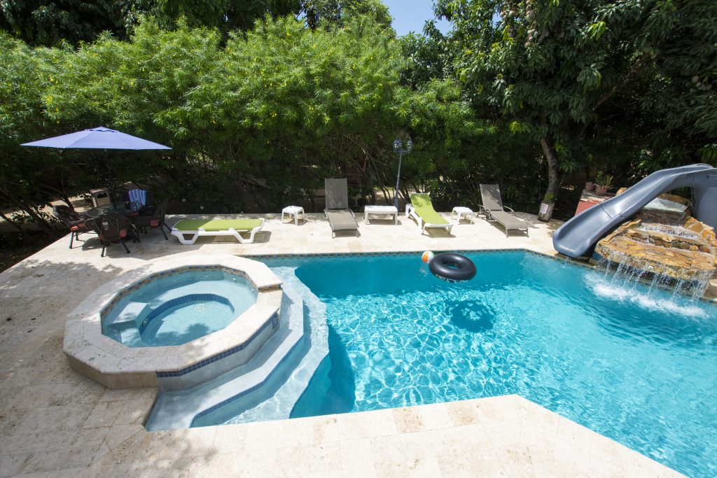 - Renovated in 2015 with a shared kitchen, owner’s quarters, and a stunning saltwater pool with waterslide