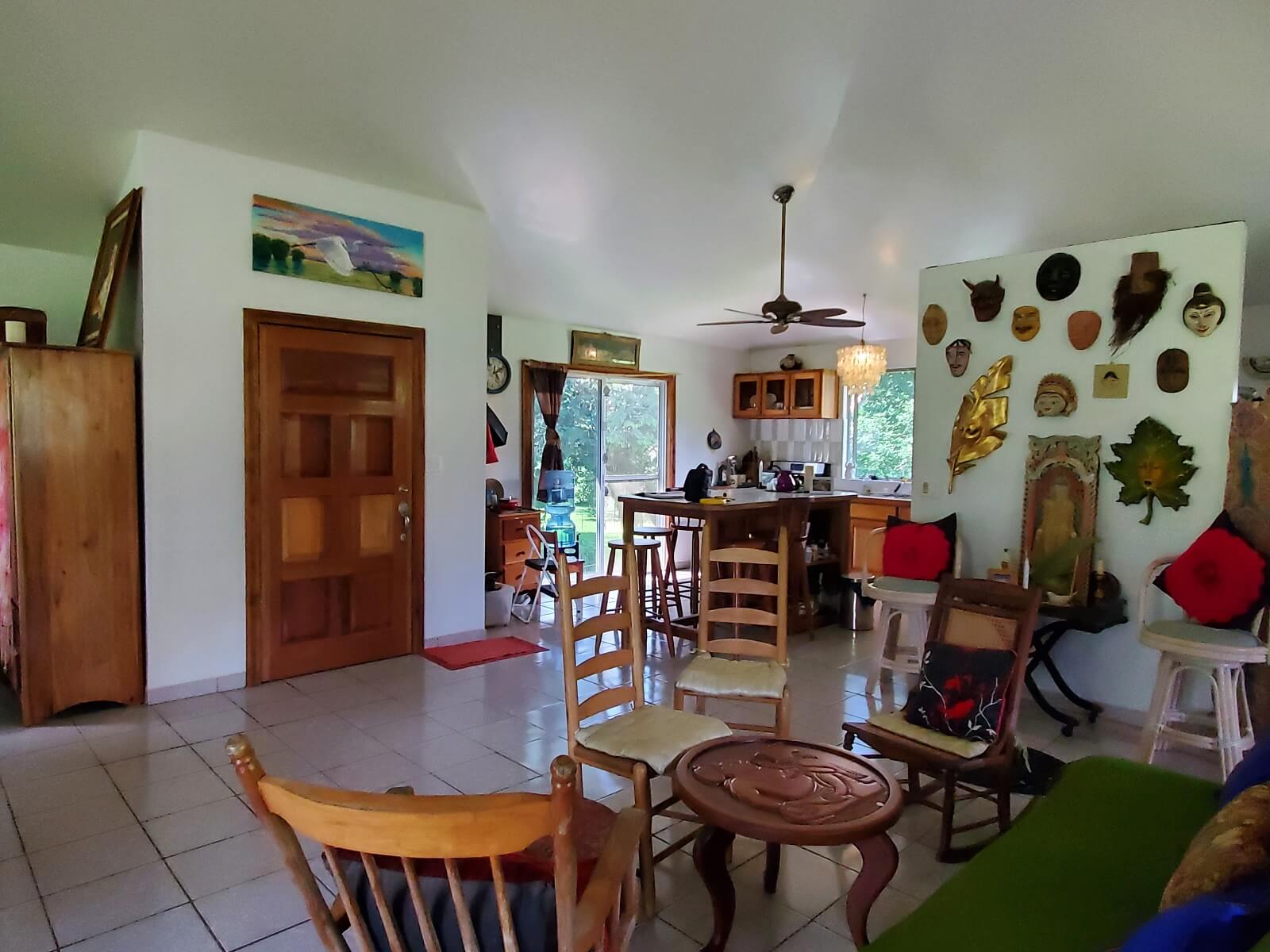From the gated entry to the riverbank, the property showcases an impressive array of mature fruit trees, including lemon, lime, grapefruit, mandarin orange, mango, papaya, cashew, cacao, banana, coconut, and even apple along with flowering plants, raised garden beds, and riverside trails. Former citrus orchards still flourish alongside open grassy fields and preserved dense jungle teeming with wildlife.