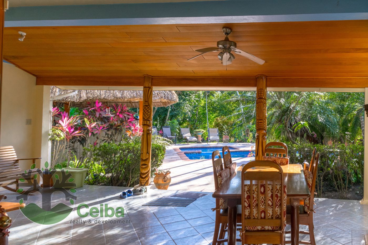 Buy Belize Real Estate is pleased to offer for sale this Luxurious Two Story Tropical Home. The main floor of this luxurious two-story home with an open plan style extends onto the covered terrace that overlooks the beautiful pool and the river. The second floor has three bedrooms with a loft and office space that leads to a balcony with a panoramic view of the town. It has a master suite with a walk-in closet and the bedrooms are very spacious and comfortable. This house is well-designed with beautiful local hardwoods including such as kitchen cabinets, closets, walk-in closets, and lots of finishings with beautiful hardwood. Outside there is a thatched outdoor kitchen that maintains a 12,000-gallon saltwater pool and splash pool. There is a two-door car garage, with a cobbled driveway with lots of parking. the luxurious home is located in town and is beautifully landscaped and surrounded by trees which give you that jungle look but is still located in the town of San Ignacio. These tall trees that surround the home are home to a large species of birds. You get that tropical feeling and coolness from the river below. You can’t ask for anything more as this will be your paradise home!!!!!