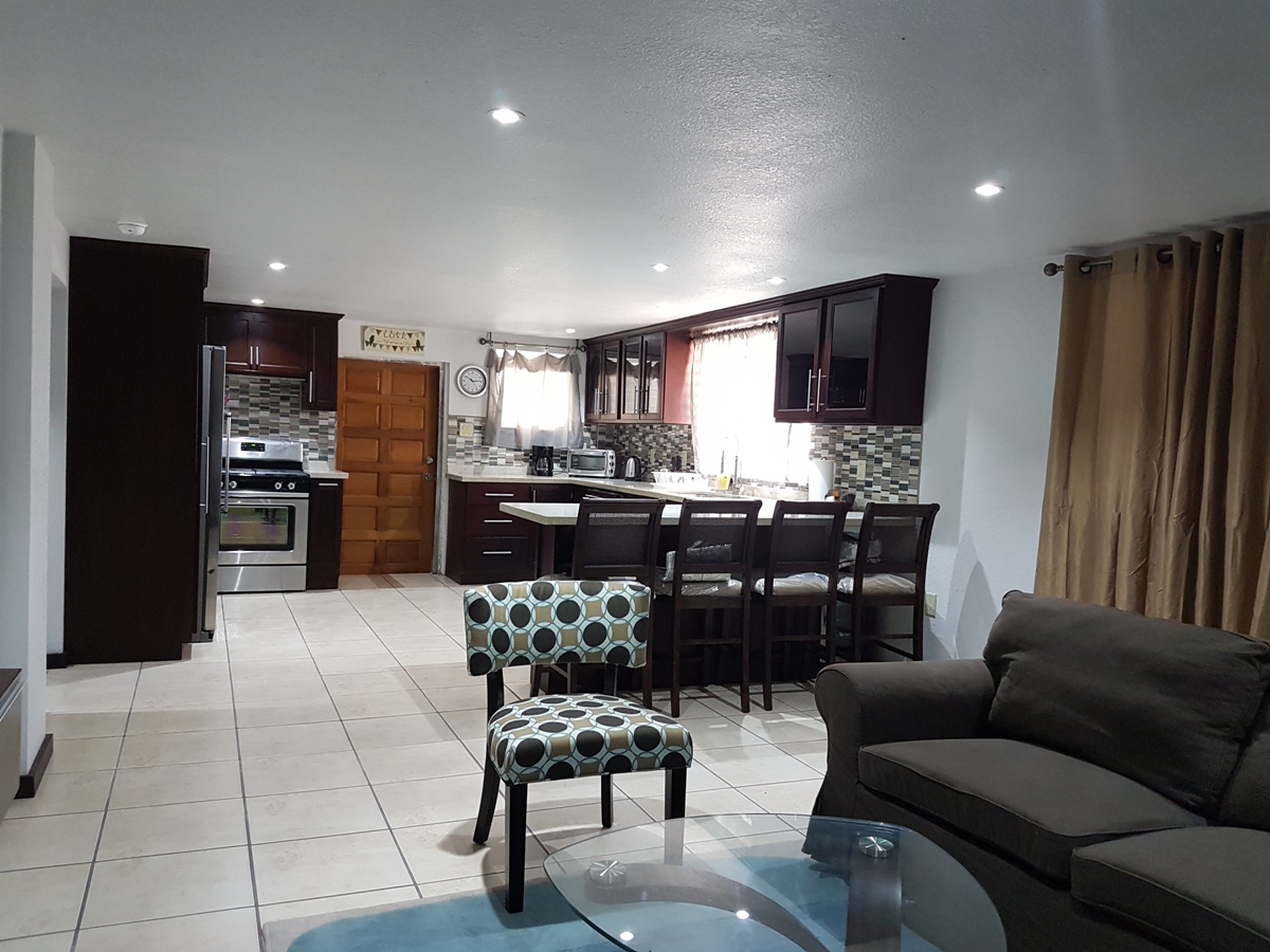 This lower flat offers approximately 1000 sq ft of living space and consists of 2 bedrooms and 1.5 bathrooms. The home offers an open dining, kitchen and living room with a den area. The kitchen is large with Mahogany cabinets. The kitchen has a large island that can double as a breakfast bar. The kitchen also has access to the washer dryer connection. The kitchen also has access to a half bath which is excellent for guests. The master bedroom is large measuring 14ft x 12ft with ample closet space. The second bedroom has access to its own full bathroom. Each bedroom and the living room is air conditioned.