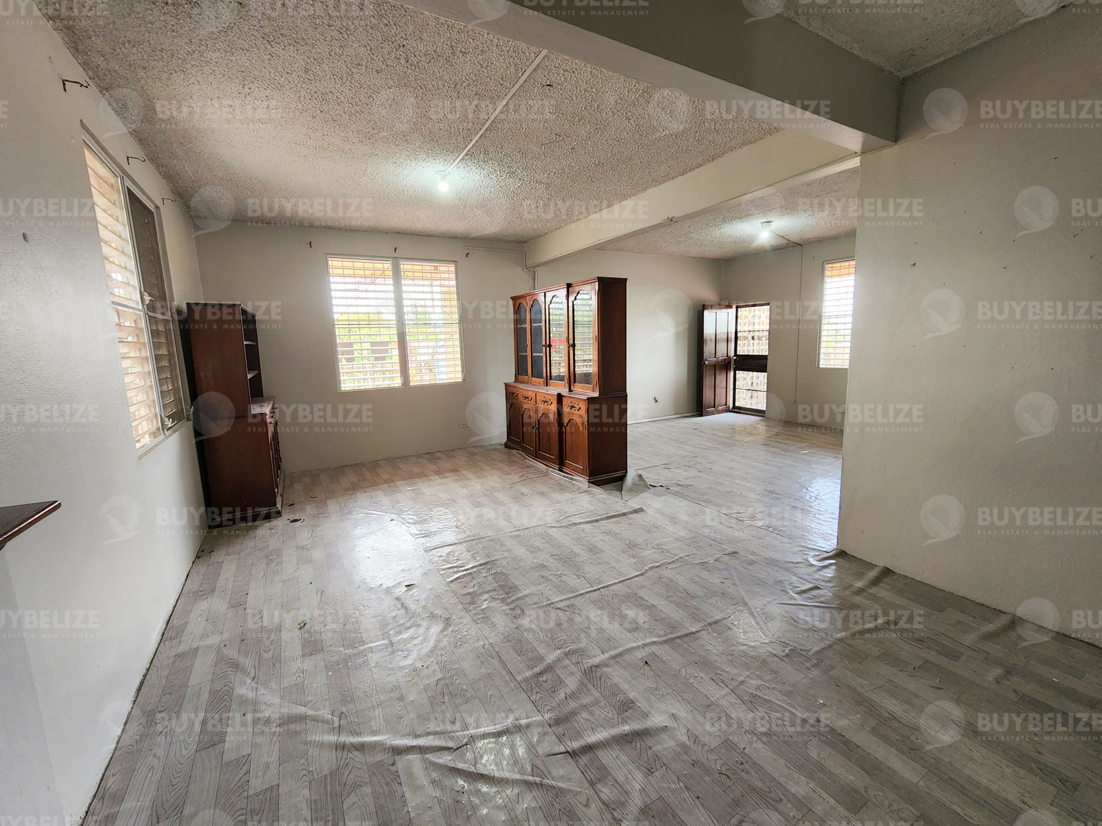 This spacious unit upon entering you will see an open space designed to be the kitchen and dining area with 2 wooden built-in kitchen cabinets available for the storage of kitchen utensils. To the left side of the dining area two movable kitchen cabinets are stationed. The living area can comfortably fit a 3-piece sofa set and directly beyond this area is the most cherished part of this unit, the huge balcony which you can over see a wide spectrum of the Ladyville Village.