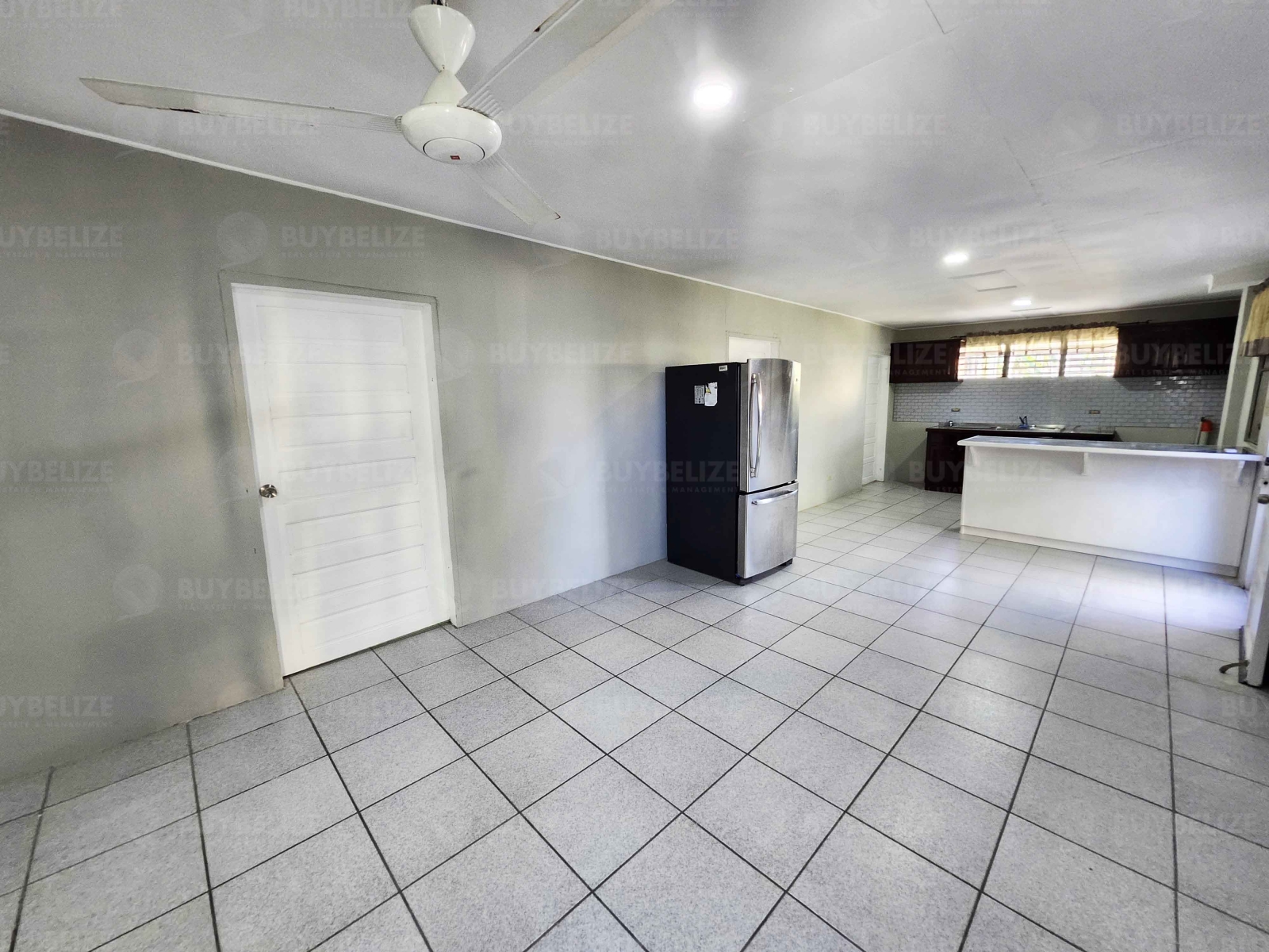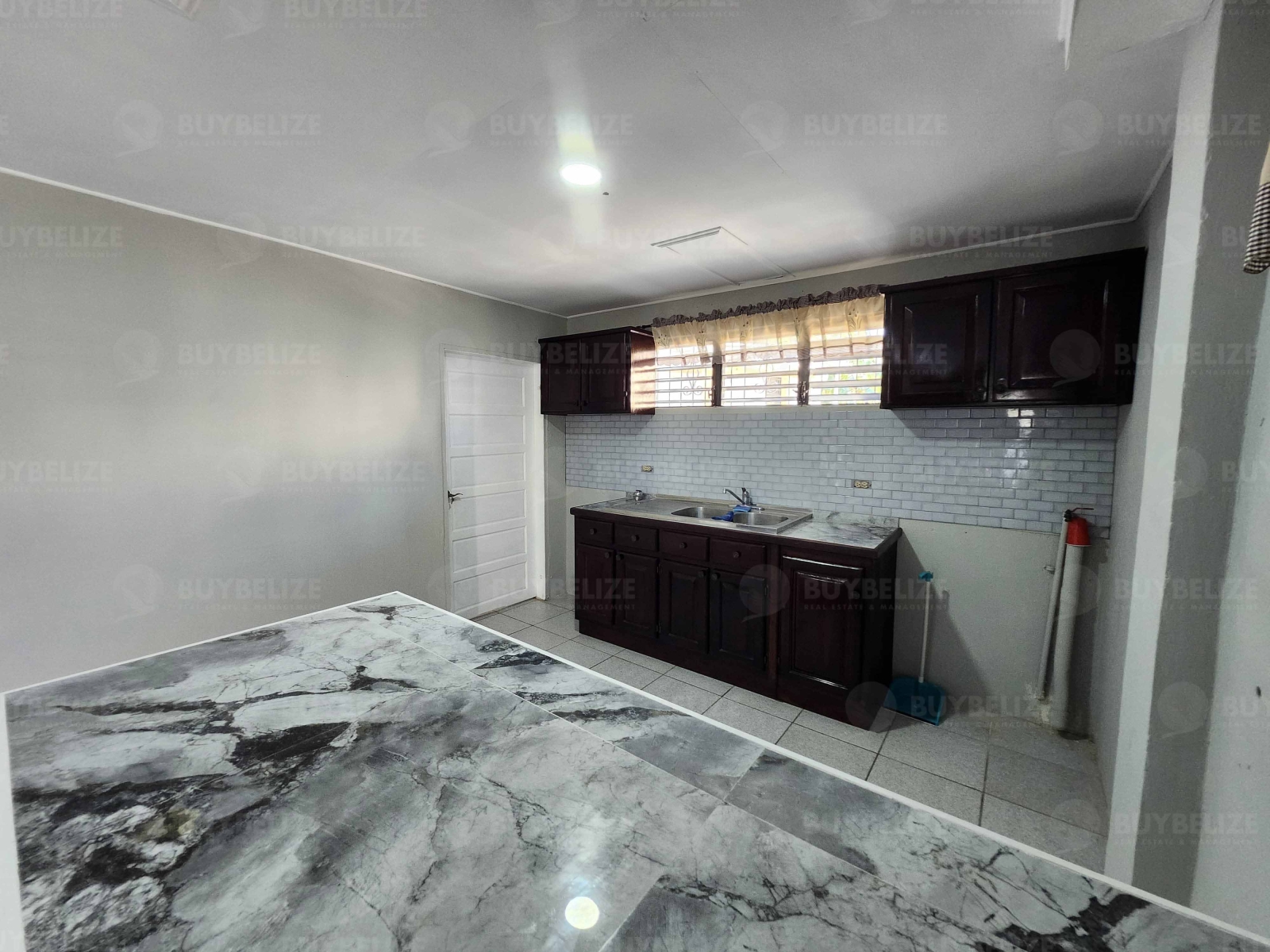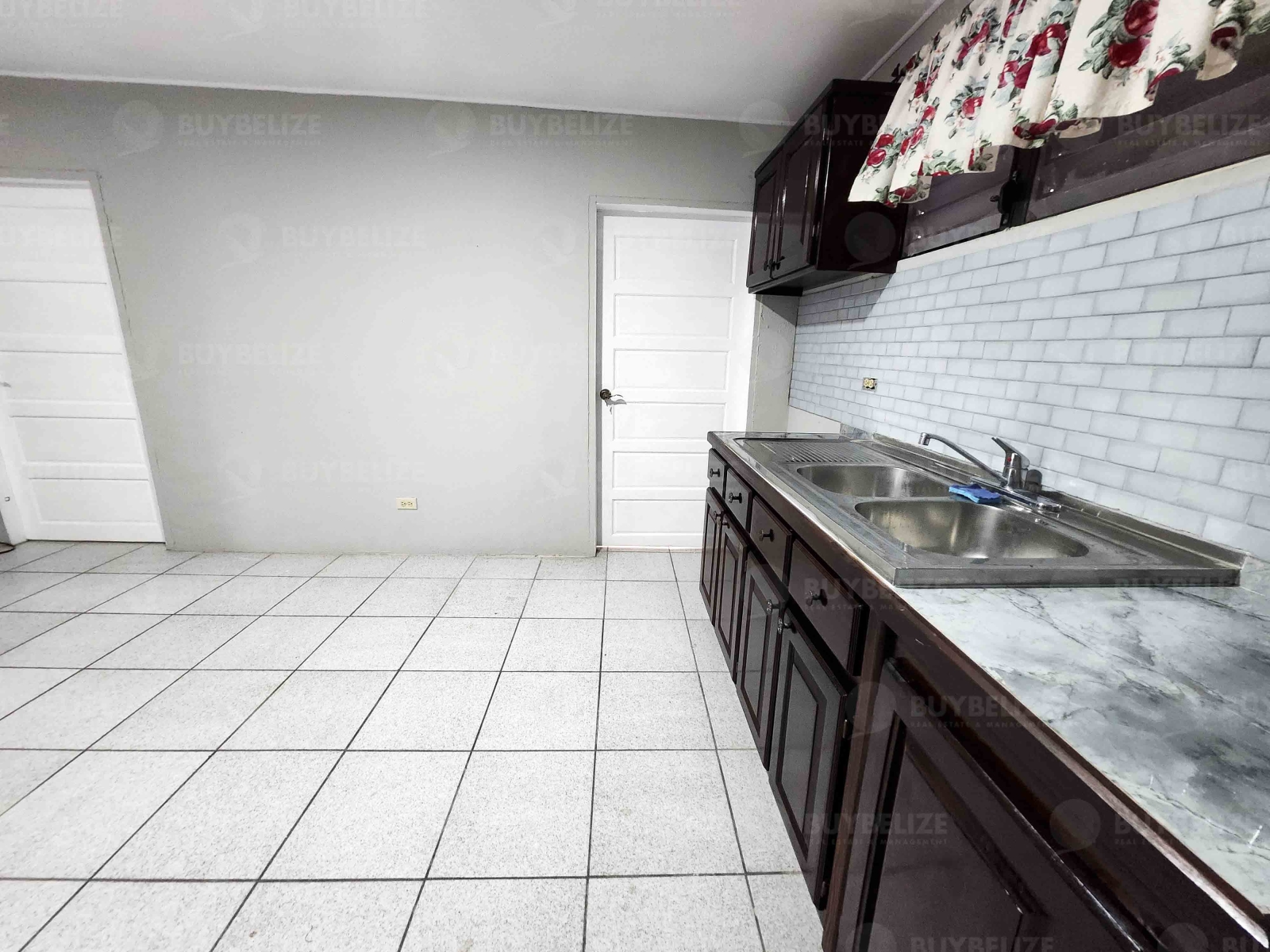Buy Belize Management presents a 3 bed 1 bath lower flat located in Buttonwood Bay. The space has an open living, kitchen and dining area. Its large enough to accommodate a sofa set, coffee table, T.V stand and other furniture. Then close by, the kitchen is fit to equip main kitchen appliances such as stove, refrigerator and a washing machine. There is also pantry cabinets above the kitchen sink for your kitchen appliances. The entire space is tiled and windows allow for lots of natural light in the apartment during the day.