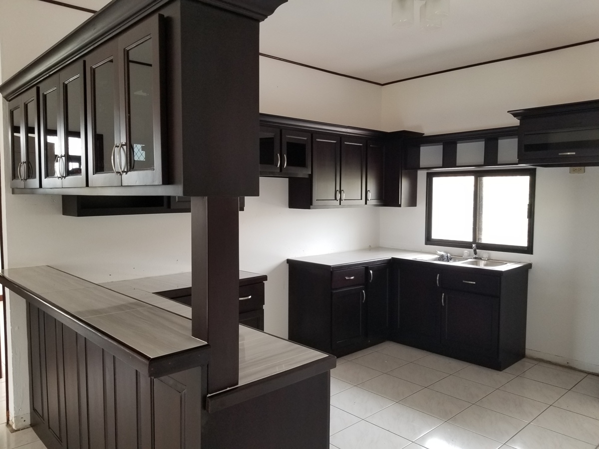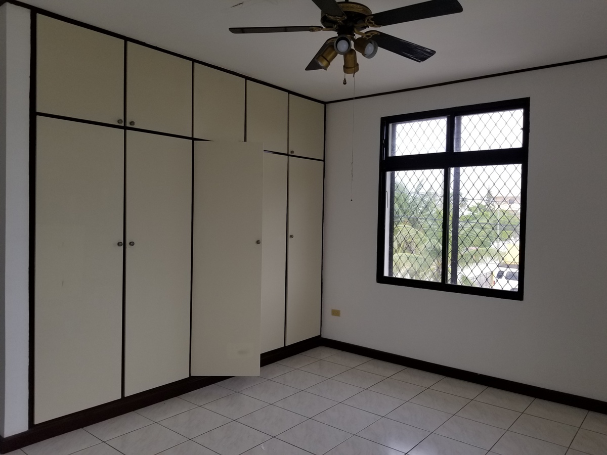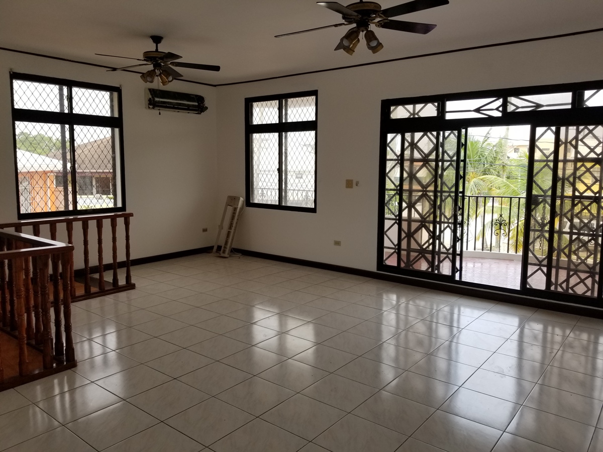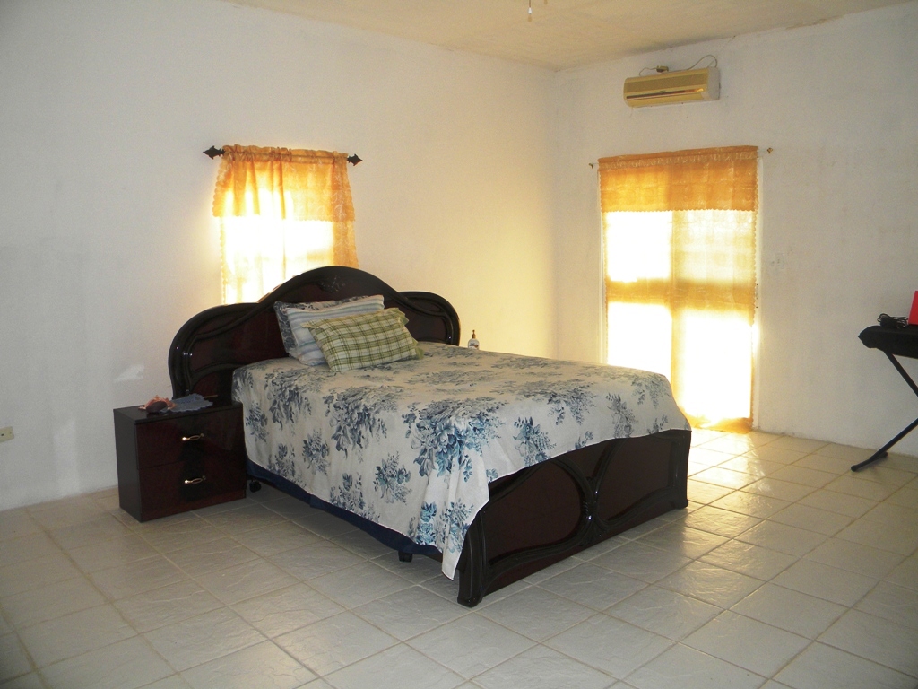 Upon entrance to the home there is a large veranda over looking the neighbourhood which is excellent to relax or have morning coffee. This apartment has an open kitchen, dining, and living that is air conditioned. The kitchen was recently renovated with local stained hardwood and has a breakfast bar. The living room is large and can easily fit a three piece sofa set. Each bedroom is fairly large with their own closet space and can easily fit a queen size bed. Three of the bedroom share one bathroom, whereas the Master Bedroom has access to its own bathroom. Three of the bedrooms are equipped with A/C.