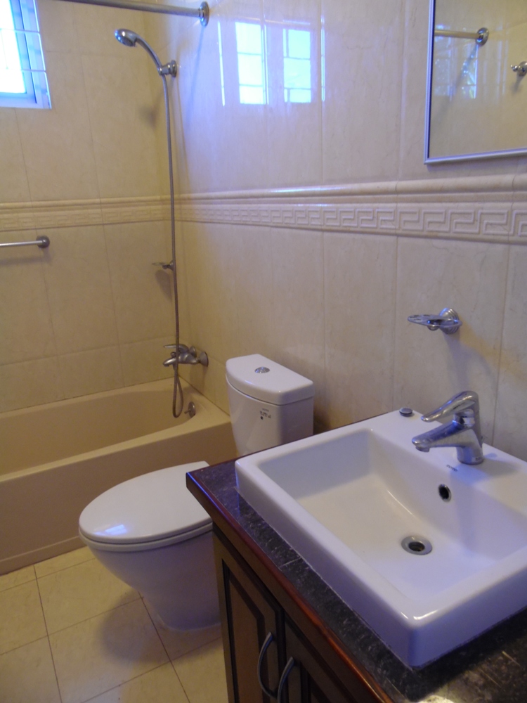 All the woodwork in the apartment were finished with local hardwood and stained with a dark Mahogany look. Each apartment is completely tiled with Italian 24x24 inch tiles.