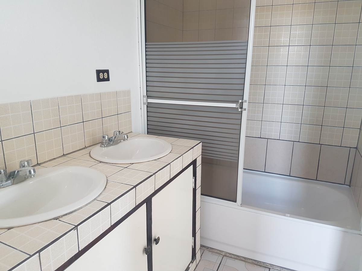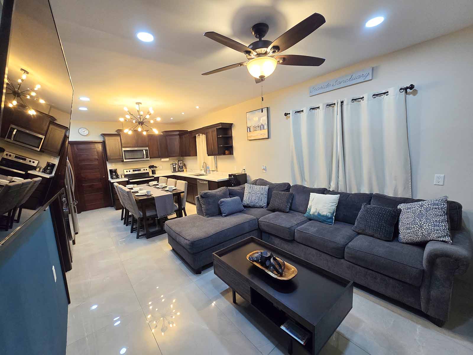 Once on the second floor the home has an open dining, kitchen and living room. From the living room there is a private balcony that overlooks the neighbourhood and still has a small sea view. The corridor leads to the 3 bedrooms and the guest bathroom. The two additional bedrooms are large enough to fit a queen size bed and each has its own closet space. The Master Bedroom has a walk in closet along with its own private bathroom. The Master Bedroom also has a private balcony.