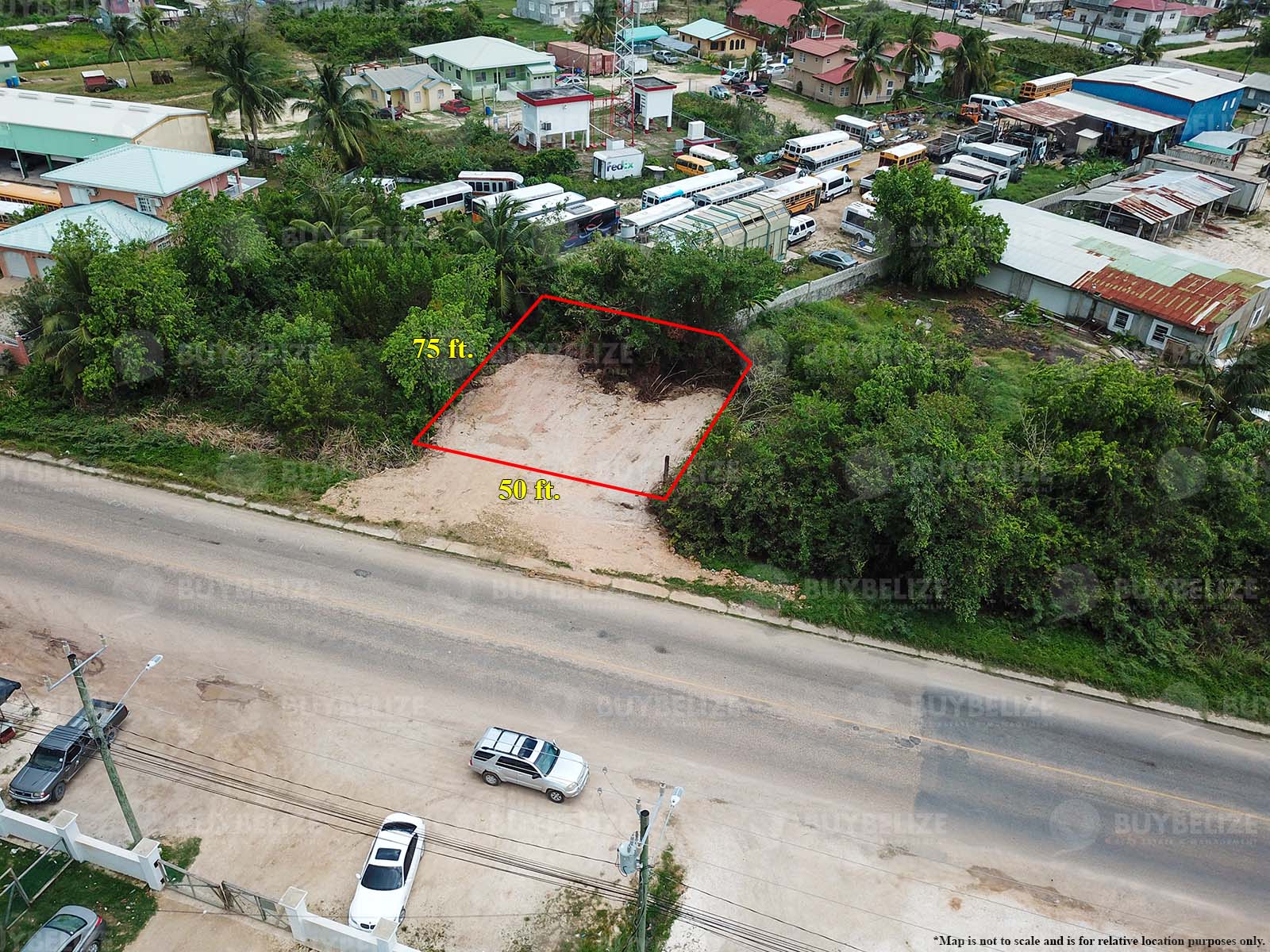 Buy Belize Real Estate LLP, presents for sale one vacant lot for sale. The lot is located on the George Price Highway within city limits. The approximate size is 3,774.58 sq. ft. with 50 ft. of road frontage and goes 75 ft. deep. The property has recently been filled and cleared of majority of its original vegetation. This piece of land would be perfectly suited for either residential or commercial purposes. Its away from the hectic and noisy inner city but still conveniently close to essential businesses and services.